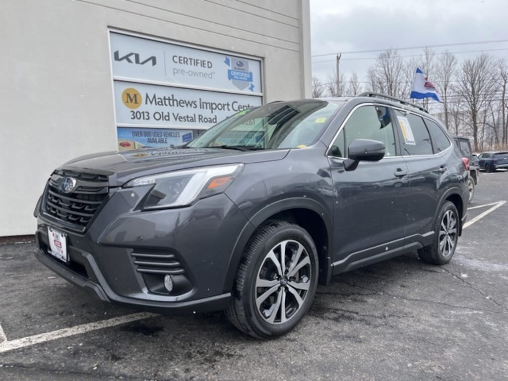 Vestal, NY 13850. Certified. Magnetite Gray Metallic 2023 Subaru Limited Forester AWD Lineartronic CVT 2.5L 4-Cylinder DOHC 16V