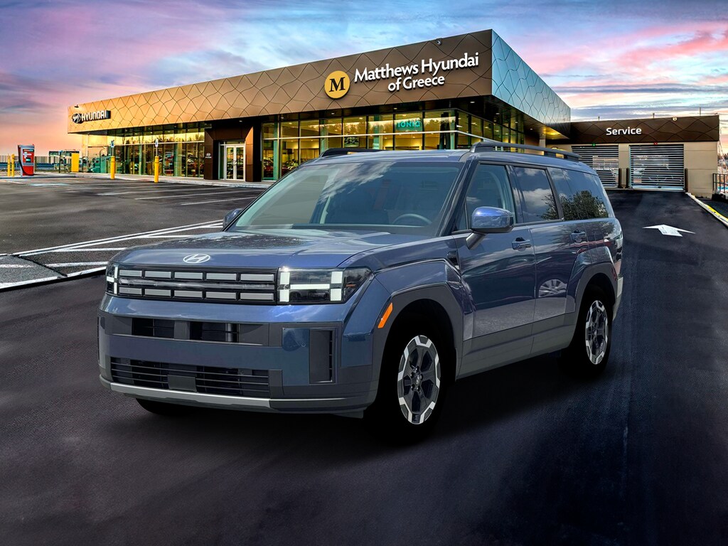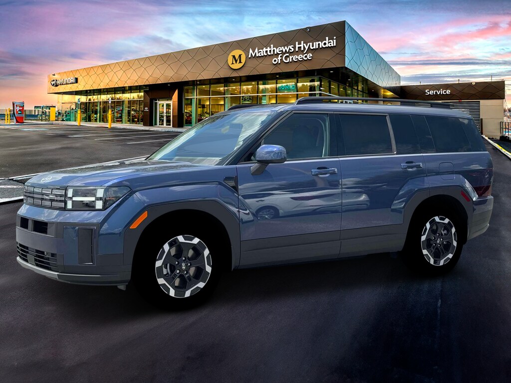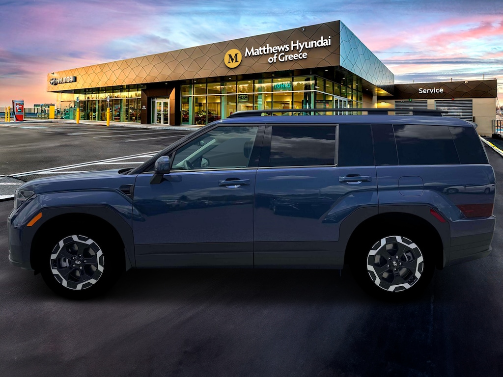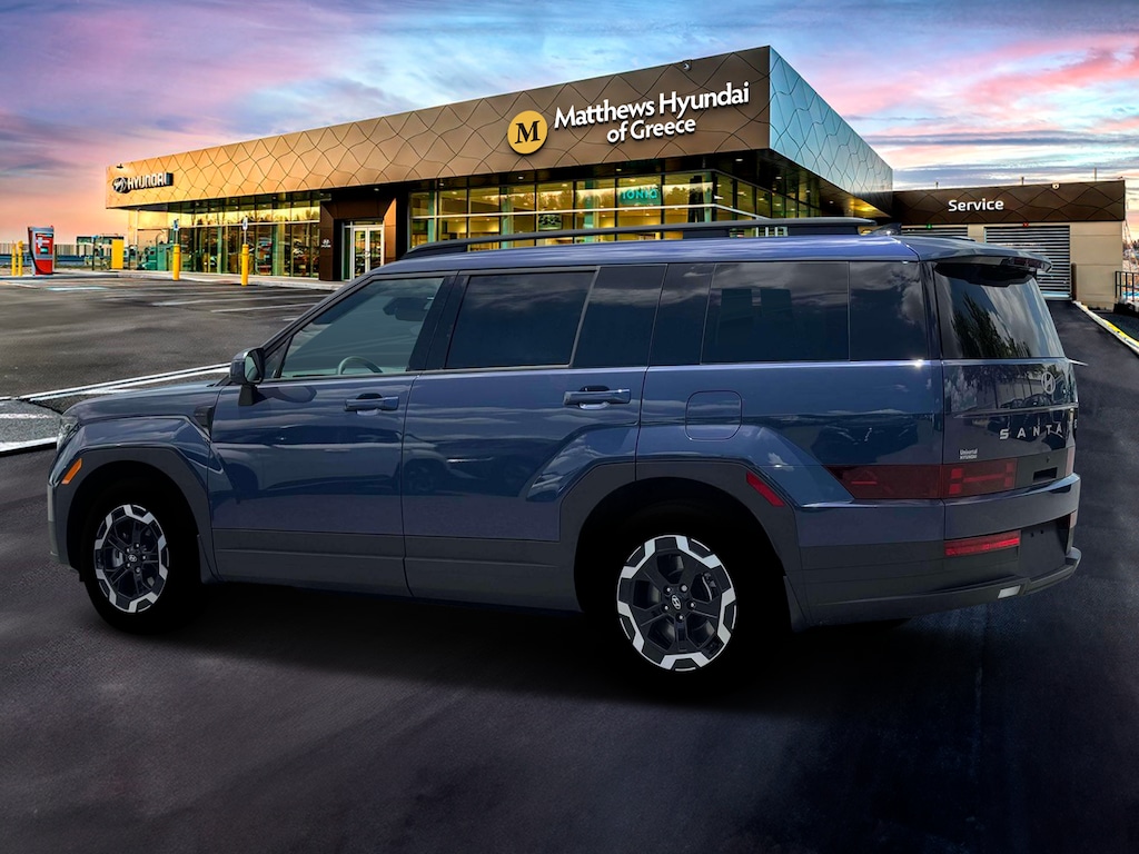Blue 2026 Hyundai Santa Fe SEL AWD 8-Speed Automatic with SHIFTRONIC 2.5L I4 AWD, Black Premium Synthetic.