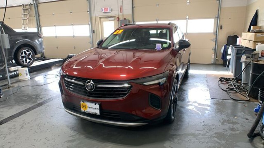 Cinnabar Metallic 2023 Buick Envision Essence AWD 9-Speed Automatic 2.0L Turbocharged 3.47 Final Drive Axle Ratio, 4-Wheel Disc Brakes, 7 Speakers, 7-Speaker Audio System Feature w/Amplifier, 8-Way Power Driver Seat Adjuster, ABS brakes, Air Conditioning, Alloy wheels, AM/FM radio: SiriusXM, Apple CarPlay/Android Auto, Auto High-beam Headlights, Auto-dimming door mirrors, Auto-dimming Rear-View mirror, Automatic Emergency Braking, Automatic temperature control, Black Roof Rails, Body-Color Door Handles, Brake assist, Bumpers: body-color, Carpeted Front & Rear Floor Mats, Compass, Delay-off headlights, Driver door bin, Driver vanity mirror, Dual front impact airbags, Dual front side impact airbags, Electronic Stability Control, Emergency communication system: OnStar and Buick connected services capable, Envision Driver Confidence, Following Distance Indicator, Forward Collision Alert, Four wheel independent suspension, Front anti-roll bar, Front Bin Center Console USB Ports, Front Bucket Seats, Front Center Armrest, Front dual zone A/C, Front Passenger 8-Way Power Seat Adjuster, Front Pedestrian Braking, Front reading lights, Fully automatic headlights, Heated door mirrors, Heated Driver & Front Passenger Seats, Heated front seats, Heated steering wheel, Illuminated entry, IntelliBeam Headlamp Control w/Auto High Beam, Knee airbag, Lane Change Alert w/Side Blind Zone Alert, Lane Keep Assist w/Lane Departure Warning, Low tire pressure warning, Lower Trim/Wheel Arch Moldings, Memory seat, Occupant sensing airbag, Outside temperature display, Overhead airbag, Overhead console, Panic alarm, Passenger door bin, Passenger vanity mirror, Perforated Leather-Appointed Seat Trim, Power door mirrors, Power driver seat, Power Liftgate, Power Panoramic Tilt-Sliding Moonroof, Power passenger seat, Power steering, Power windows, Preferred Equipment Group 1SL, Premium audio system: Buick Infotainment System, Radio data system, Radio: Buick Infotainment System AM/FM Stereo, Rear anti-roll bar, Rear Cargo Compartment Cover, Rear Cross Traffic Alert, Rear reading lights, Rear seat center armrest, Rear window defroster, Rear window wiper, Remote keyless entry, Security system, SiriusXM Radio, Speed control, Split folding rear seat, Spoiler, Sport Alloy Pedals, Sport Touring Package, Steering wheel mounted audio controls, Telescoping steering wheel, Tilt steering wheel, Traction control, Trip computer, USB Charging-Only Ports, Variably intermittent wipers, Wheels: 18" Machined Aluminum w/Light Silver Met, Wheels: 20" Aluminum w/Dark Finish, Wireless Apple CarPlay/Wireless Android Auto.
