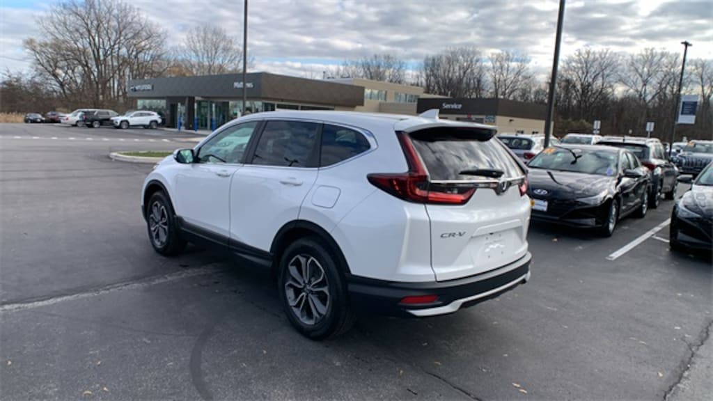 Platinum White Pearl 2022 Honda CR-V EX AWD CVT 1.5L I4 DOHC 16V AWD, 18" Alloy Wheels, 4-Wheel Disc Brakes, 5.64 Axle Ratio, 6 Speakers, ABS brakes, Adaptive Cruise Control: Adaptive Cruise Control (ACC) with Low-Speed Follow, Air Conditioning, Alloy wheels, AM/FM radio: SiriusXM, Apple CarPlay/Android Auto, Auto High-beam Headlights, Automatic temperature control, Blind Spot Information (BSI) System warning, Brake assist, Bumpers: body-color, Cloth Seat Trim, Compass, Delay-off headlights, Driver door bin, Driver vanity mirror, Dual front impact airbags, Dual front side impact airbags, Electronic Stability Control, Exterior Parking Camera Rear, Forward collision: Collision Mitigation Braking System (CMBS) + FCW mitigation, Four wheel independent suspension, Front anti-roll bar, Front Bucket Seats, Front Center Armrest, Front dual zone A/C, Front fog lights, Front reading lights, Heated door mirrors, Heated Front Bucket Seats, Heated front seats, Illuminated entry, Low tire pressure warning, Occupant sensing airbag, Outside temperature display, Overhead airbag, Overhead console, Panic alarm, Passenger door bin, Passenger vanity mirror, Power door mirrors, Power driver seat, Power moonroof, Power steering, Power windows, Radio data system, Radio: 180-Watt AM/FM/HD/SiriusXM Audio System, Rear anti-roll bar, Rear seat center armrest, Rear window defroster, Rear window wiper, Remote keyless entry, Security system, Speed control, Speed-sensing steering, Speed-Sensitive Wipers, Spoiler, Steering wheel mounted audio controls, Tachometer, Telescoping steering wheel, Tilt steering wheel, Traction control, Trip computer, Turn signal indicator mirrors, Variably intermittent wipers.