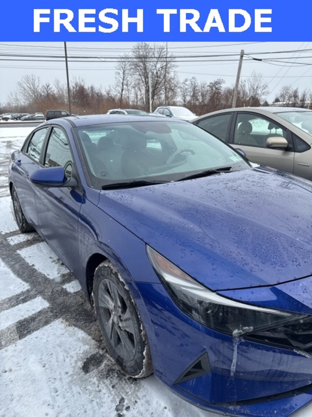 Intense Blue 2022 Hyundai Elantra SEL FWD CVT 2.0L 4-Cylinder DOHC 16V 16" x 6.5J Alloy Wheels, 4-Wheel Disc Brakes, 6 Speakers, ABS brakes, Air Conditioning, Alloy wheels, AM/FM radio: SiriusXM, Apple CarPlay & Android Auto, Auto High-beam Headlights, Automatic temperature control, Brake assist, Bumpers: body-color, Cargo Net, Carpeted Floor Mats, Cloth Seat Trim, Convenience Package, Delay-off headlights, Driver door bin, Driver vanity mirror, Dual front impact airbags, Dual front side impact airbags, Electronic Parking Brake, Electronic Stability Control, Emergency communication system: Blue Link Connected Car Service (3-year complimentary subscription), Exterior Parking Camera Rear, First Aid Kit, Forward Collision Avoidance Assist, Front anti-roll bar, Front Bucket Seats, Front Center Armrest, Front dual zone A/C, Front reading lights, Front wheel independent suspension, Full 10.25" LCD TFT Cluster, Fully automatic headlights, Heated Front Seats, Heated Outside Mirrors, Illuminated entry, Leather-Wrapped Steering Wheel, Low tire pressure warning, Mudguards, Occupant sensing airbag, Option Group 02, Outside temperature display, Overhead airbag, Overhead console, Panic alarm, Passenger door bin, Passenger vanity mirror, Power door mirrors, Power steering, Power windows, Radio: AM/FM/HD/SiriusXM Display Audio, Rear Bumper Applique, Rear window defroster, Remote keyless entry, Security system, Smart Cruise Control w/Stop & Go, Speed control, Speed-sensing steering, Steering wheel mounted audio controls, Tachometer, Telescoping steering wheel, Tilt steering wheel, Traction control, Trip computer, Variably intermittent wipers, Wheel Locks, Wireless Device Charging.