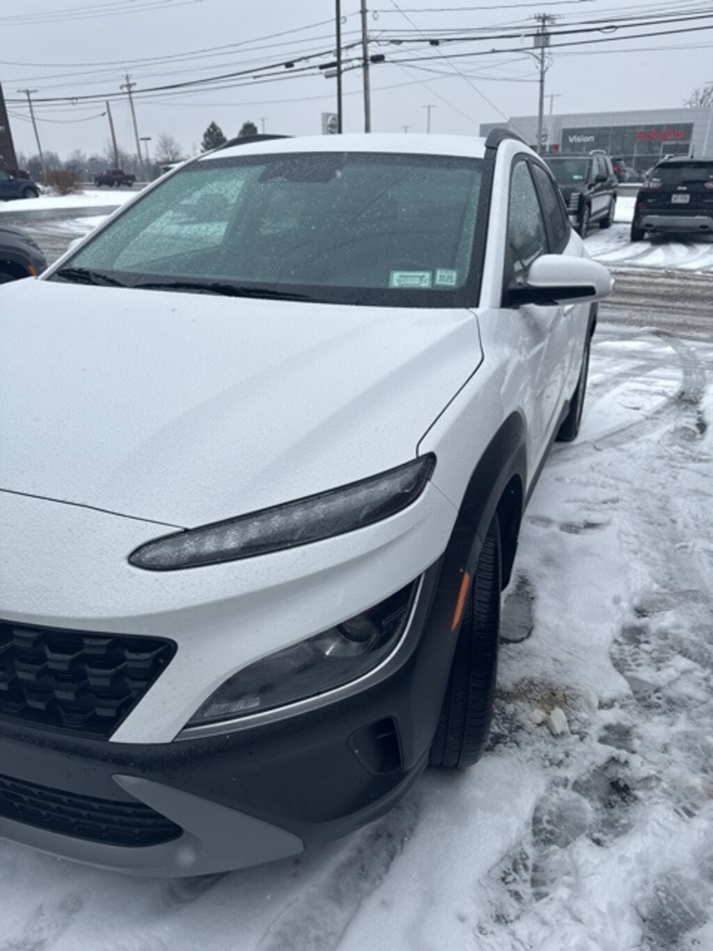 Lunar White 2023 Hyundai Kona SEL AWD CVT 2.0L I4 DOHC Dual CVVT 17" x 7.0J Alloy Wheels, 4-Wheel Disc Brakes, 5.715 Axle Ratio, 6 Speakers, ABS brakes, Air Conditioning, Alloy wheels, AM/FM radio: SiriusXM, Apple CarPlay & Android Auto, Brake assist, Bumpers: body-color, Cargo Net, Cargo Tray, Carpeted Floor Mats, Cloth Seat Trim, Delay-off headlights, Driver door bin, Driver vanity mirror, Dual front impact airbags, Dual front side impact airbags, Electronic Stability Control, Emergency communication system: Blue Link Connected Car Service (3-year complimentary subscription), Exterior Parking Camera Rear, Four wheel independent suspension, Front & Rear Mudguards, Front anti-roll bar, Front Bucket Seats, Front Center Armrest, Front reading lights, Fully automatic headlights, Heated door mirrors, Illuminated entry, Low tire pressure warning, Occupant sensing airbag, Option Group 01, Outside temperature display, Overhead airbag, Overhead console, Panic alarm, Passenger door bin, Passenger vanity mirror, Power door mirrors, Power driver seat, Power steering, Power windows, Radio: AM/FM/HD/SiriusXM Audio System, Rear anti-roll bar, Rear seat center armrest, Rear window defroster, Rear window wiper, Remote keyless entry, Security system, Speed control, Speed-sensing steering, Split folding rear seat, Spoiler, Steering wheel mounted audio controls, Tachometer, Telescoping steering wheel, Tilt steering wheel, Traction control, Trip computer, Turn signal indicator mirrors, Variably intermittent wipers.