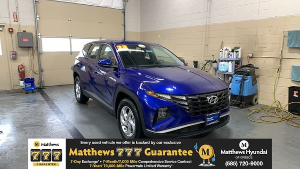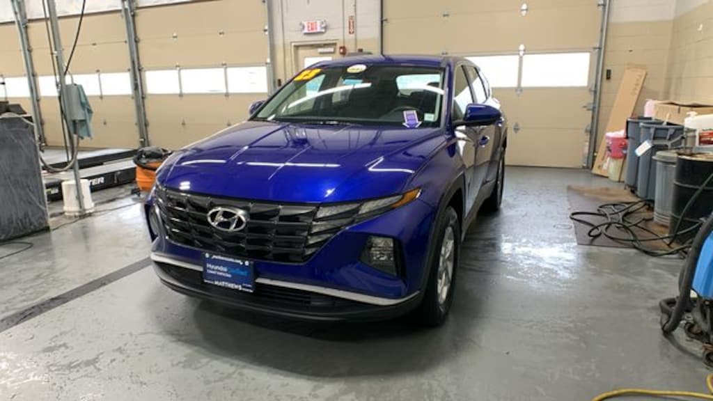 Intense Blue 2023 Hyundai Tucson SE AWD 8-Speed Automatic with SHIFTRONIC 2.5L I4 DGI DOHC 16V LEV3-ULEV70 187hp AWD, 3.648 Axle Ratio, 4-Wheel Disc Brakes, 6 Speakers, ABS brakes, Air Conditioning, Alloy wheels, AM/FM radio, Apple CarPlay & Android Auto, Auto High-beam Headlights, Brake assist, Bumpers: body-color, Cargo Cover, Carpeted Floor Mats, Delay-off headlights, Driver door bin, Driver vanity mirror, Dual front impact airbags, Dual front side impact airbags, Electronic Stability Control, Four wheel independent suspension, Front and Rear Mudguards, Front anti-roll bar, Front Bucket Seats, Front Center Armrest, Front reading lights, Fully automatic headlights, Illuminated entry, Low tire pressure warning, Occupant sensing airbag, Option Group 01, Outside temperature display, Overhead airbag, Overhead console, Panic alarm, Passenger door bin, Passenger vanity mirror, Power door mirrors, Power steering, Power windows, Radio data system, Radio: AM/FM/HD Audio System, Rear anti-roll bar, Rear seat center armrest, Rear window defroster, Rear window wiper, Remote keyless entry, Security system, Speed control, Split folding rear seat, Spoiler, Stain & Odor Resistant Cloth Seat Trim, Steering wheel mounted audio controls, Tachometer, Telescoping steering wheel, Tilt steering wheel, Traction control, Trip computer, Variably intermittent wipers, Wheels: 17" x 7.0J" Alloy.