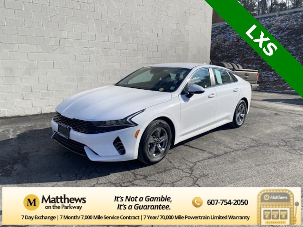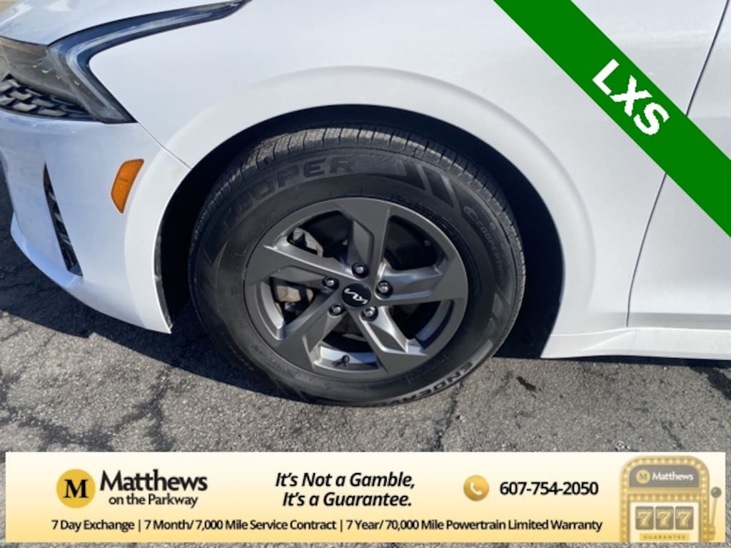 Our 2023 Kia K5 LXS beams in Glacial White Pearl! This sedan has style, comfort and capability.